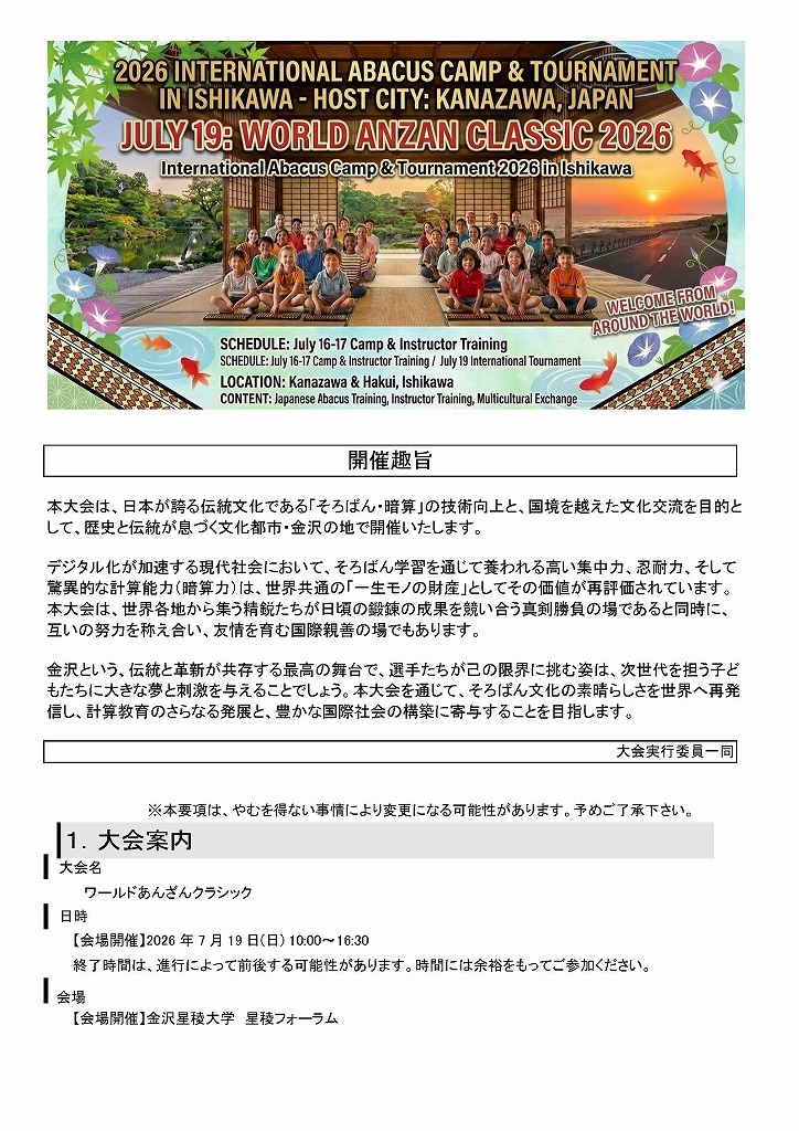主催 日本国際そろばん協会